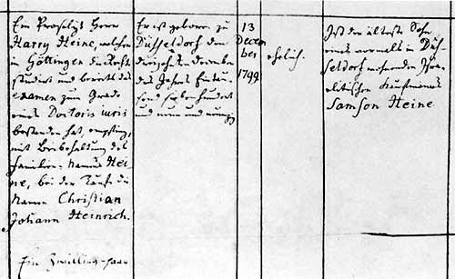 Taufbuch-Eintrag "Harry Heine" - Heinrich H. als Pros- bzw. Anti-elyt! (in Heiligenstadt 1825):"Erhielt die Namen Christian Johann Heinrich", "geboren den 13. Dez. 1799 zu Düsseldorf als ehel. Sohn des israelitischen Kaufmanns Samson Heine".