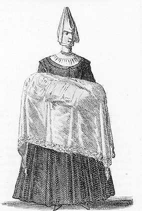 Schwarzer Wollstoff, gerader Mantel (Schal, "Huuseggen"= Hausecke), weisse spitze Kirchenhaube ("Sturz"), kompliziert gebaut (Reminiszenz an den Schleier); später "Rosenkappe", "Hinderfür" und "Schäppeli" (Näheres bei Ziegler, Sittenmandate S. 61).