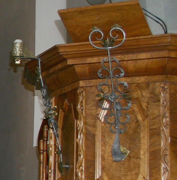 Kilchberg ZH, 9/2006: Blick zum Chor mit der alten Metzler-Orgel von 1934, die 1960 von Ziegler erweitert wurde. Rechts die Hochkanzel, in der Mitte der Taufstein, beide von 1737. - Stuckdecke von 1758.