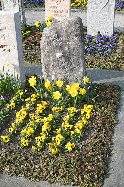 Das Grab von Ludwig Klages, dem Lebensphilosophen und Graphologen zu Beginn des 20. Jhd.s. - Ganz in der Nähe wollte Thomas Mann begraben sein. In der Familiengrabstätte sind alle Angehörigen beigesetzt, ausser Klaus (+1948 in Cannes) und Golo (+1994, im Reihengrab auf dem gleichen Friedhof, neuer Teil, südöstlich).