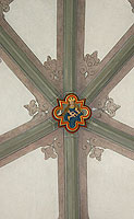 Schlusssteine im Chorgewölbe: Muttergottes, Lamm Gottes, Hand Gottes mit Wundmalen.