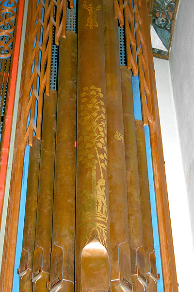 Die verzierten Pfeifen im linken Pedalturm: Erkenntnisbaum mit Adam und Eva ...