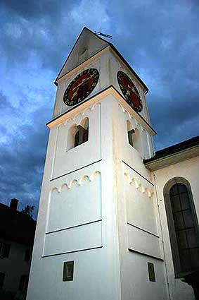 Die erste Turmuhr wurde von Heinrich Füssli aus Zürich 1640 eingebaut; sie hatte bis 1924 nur ein dorfseitiges Zifferblatt und einen Stundenzeiger. - Das Uhrwerk blieb über 284 Jahre das gleiche!